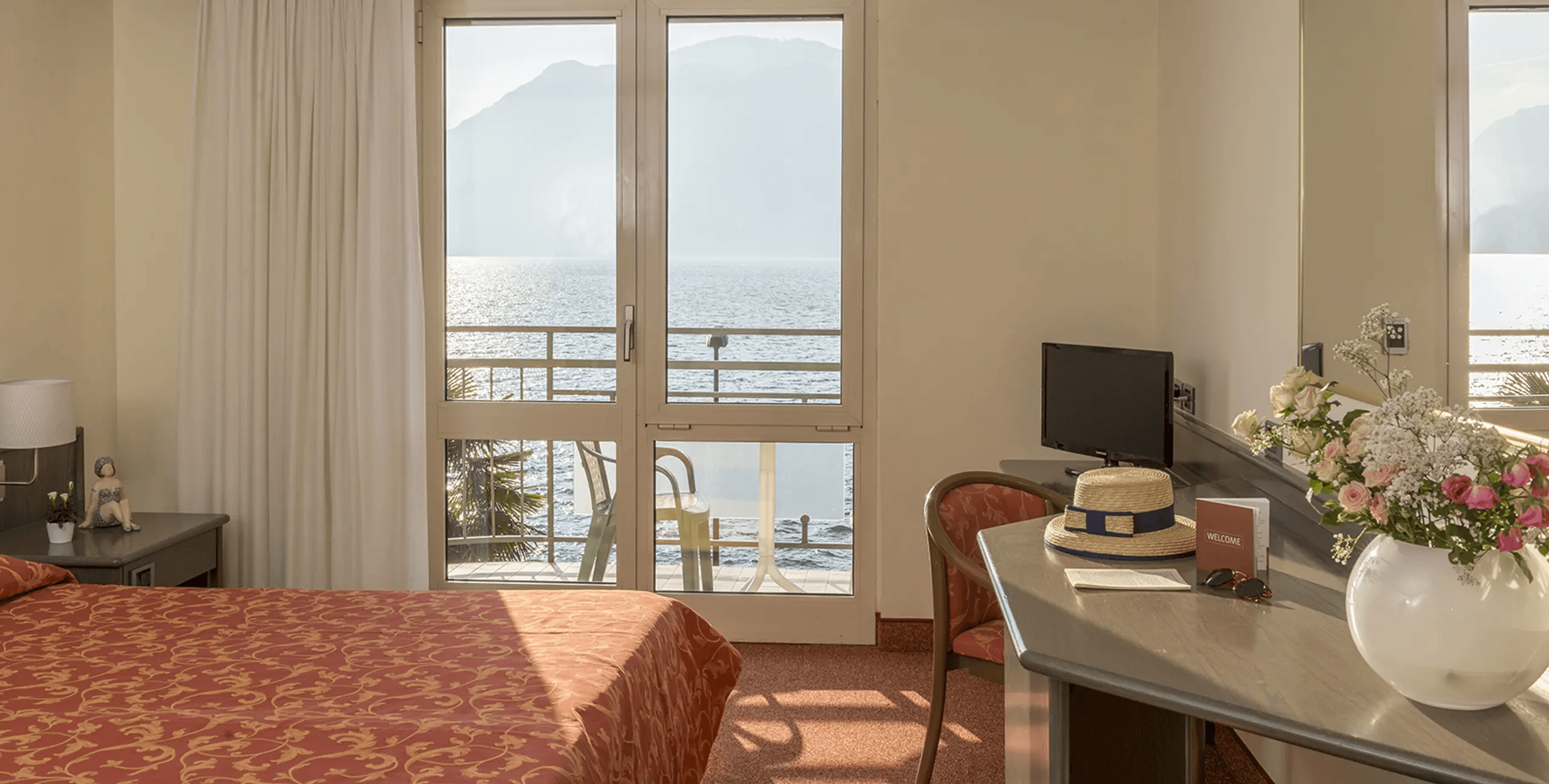 Vivere il Lago di Garda dalla sua prospettiva più autentica. La Camera Comfort Fronte Lago rappresenta l'apice dell'ospitalità all'Hotel Drago: uno spazio dove il confine tra interno ed esterno sfuma grazie al balcone privato affacciato direttamente sullo specchio d'acqua.